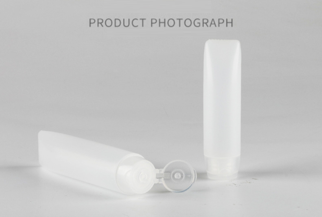 Capacity: 30/50ML Weight: 7.8/10.4g Color: White Material: PE, PP Production process: silk screen, sandblasting, color, thermal transfer Application: Suitable for packaging facial cleanser, hand cream, toothpaste, shower gel, shampoo, conditioner and other lotion products.