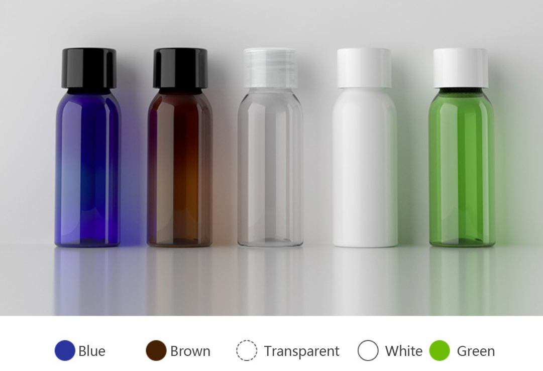 Capacity: 30ml Weight: 9g Material: PET, PP Color: blue, brown, transparent, white, green Production process: silk screen, sandblasting, color, thermal transfer Application: suitable for packaging skin care water, makeup lotion and other products.