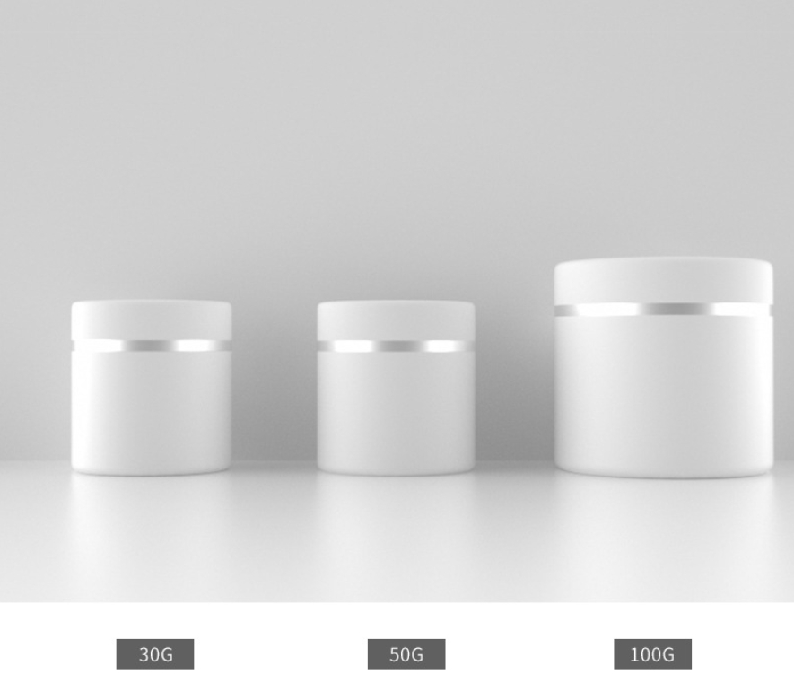 Capacity: 30/50/100g Weight: 33.3/33.9/55.5g Color: white Material: PP Production process: silk screen printing, color, sandblasting, thermal transfer Application: suitable for creams, morning and night creams, gels and other cream products.